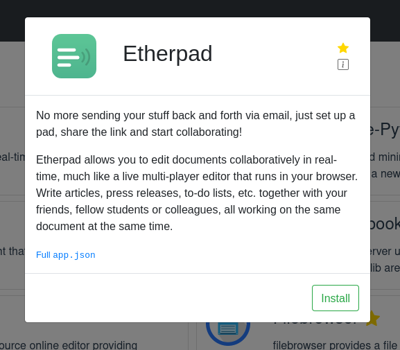 When your app is ready and tested, you can submit it to be listed in the freeshard app store. This allows all other freeshard users to find and install it with a single click.